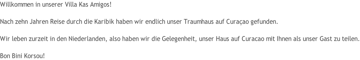 Willkommen bei unserer Villa Kas Amigos Willkommen Curaçao Villa Aktivitäten Up (parent) Home Willkommen bei Kas Amigos Curaçao Villa Activitäten Willkommen Welkom Welcome